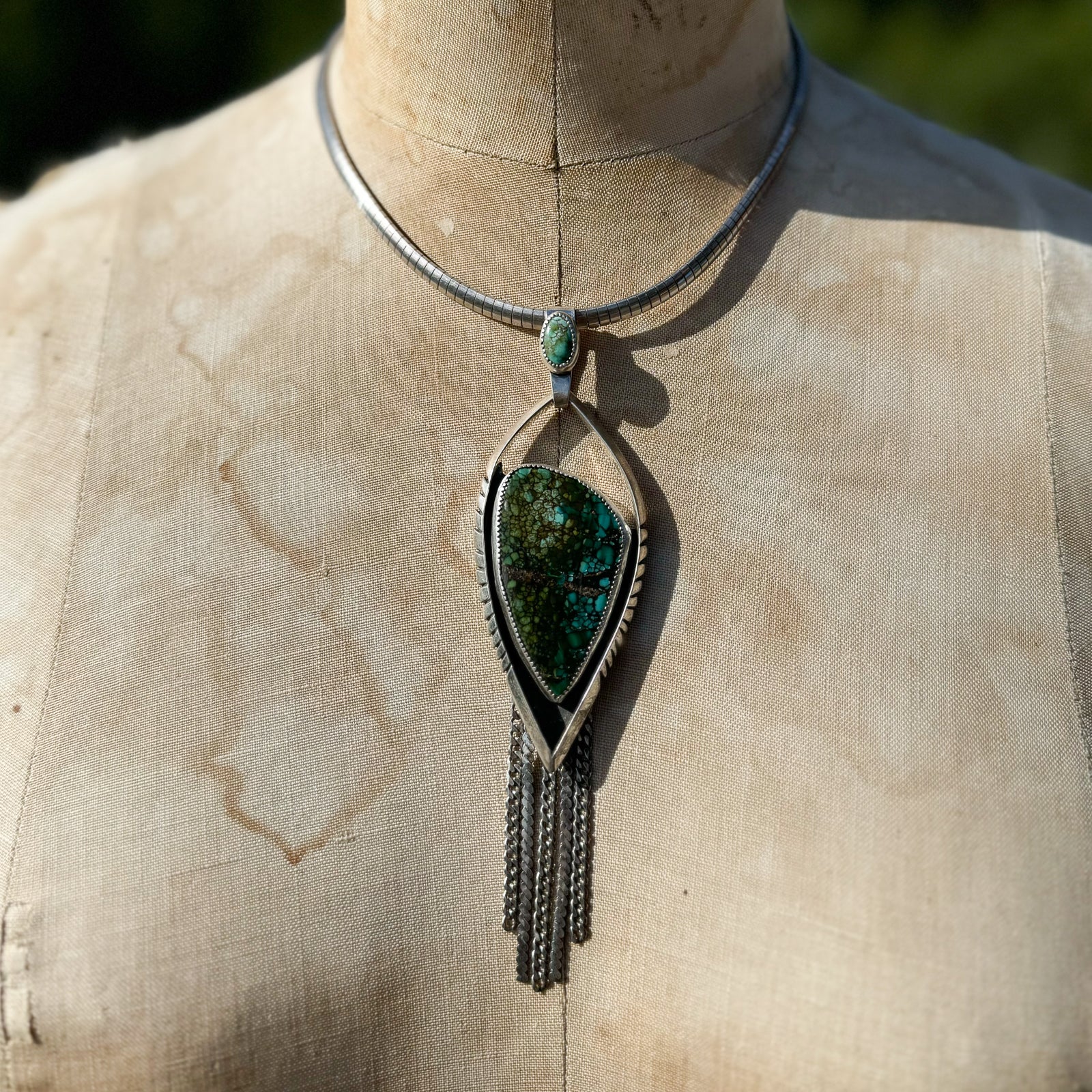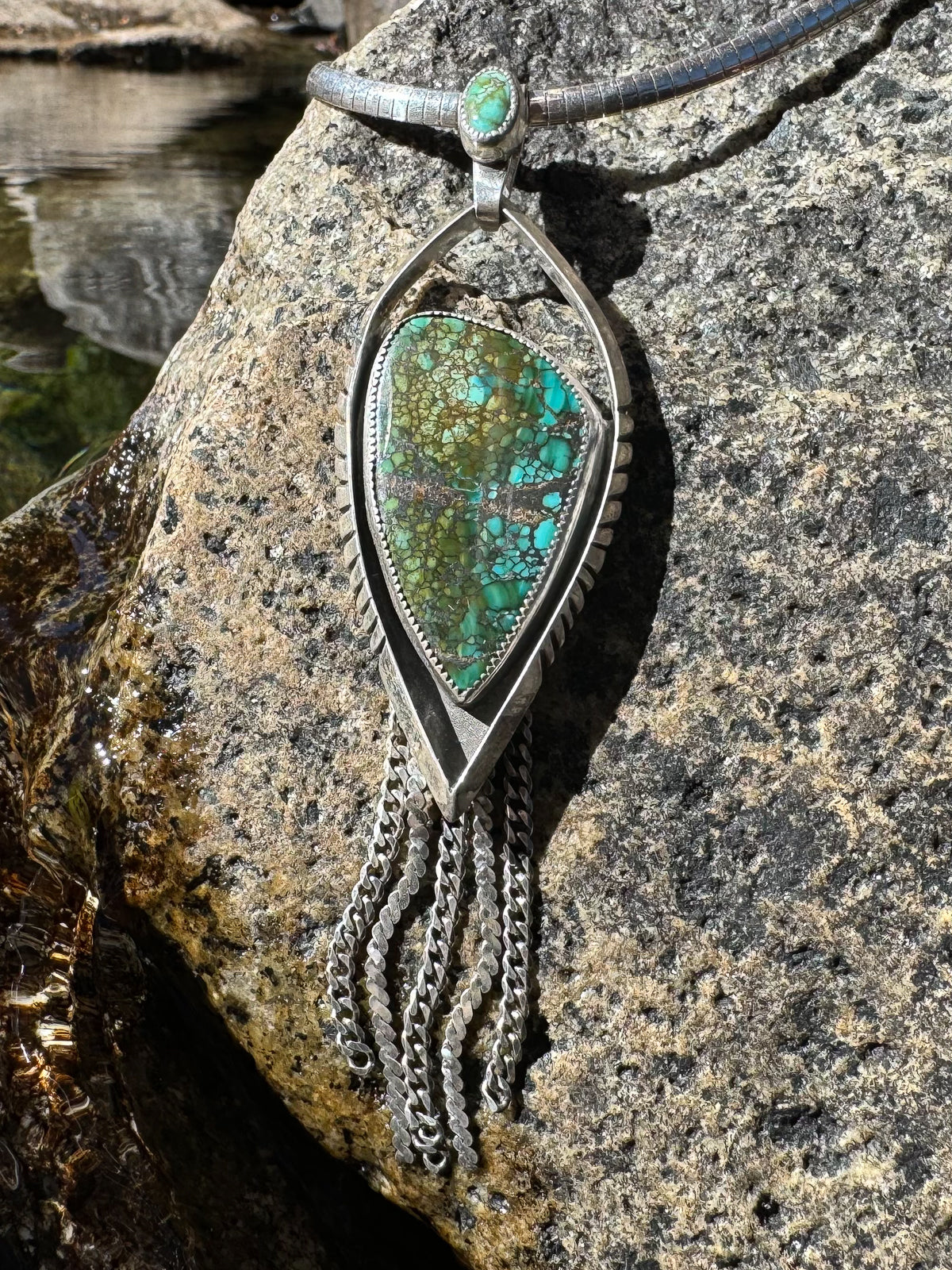 Pendant Polychrome Hubei Turquoise Sterling Silver Arrow with Chain Fringe
