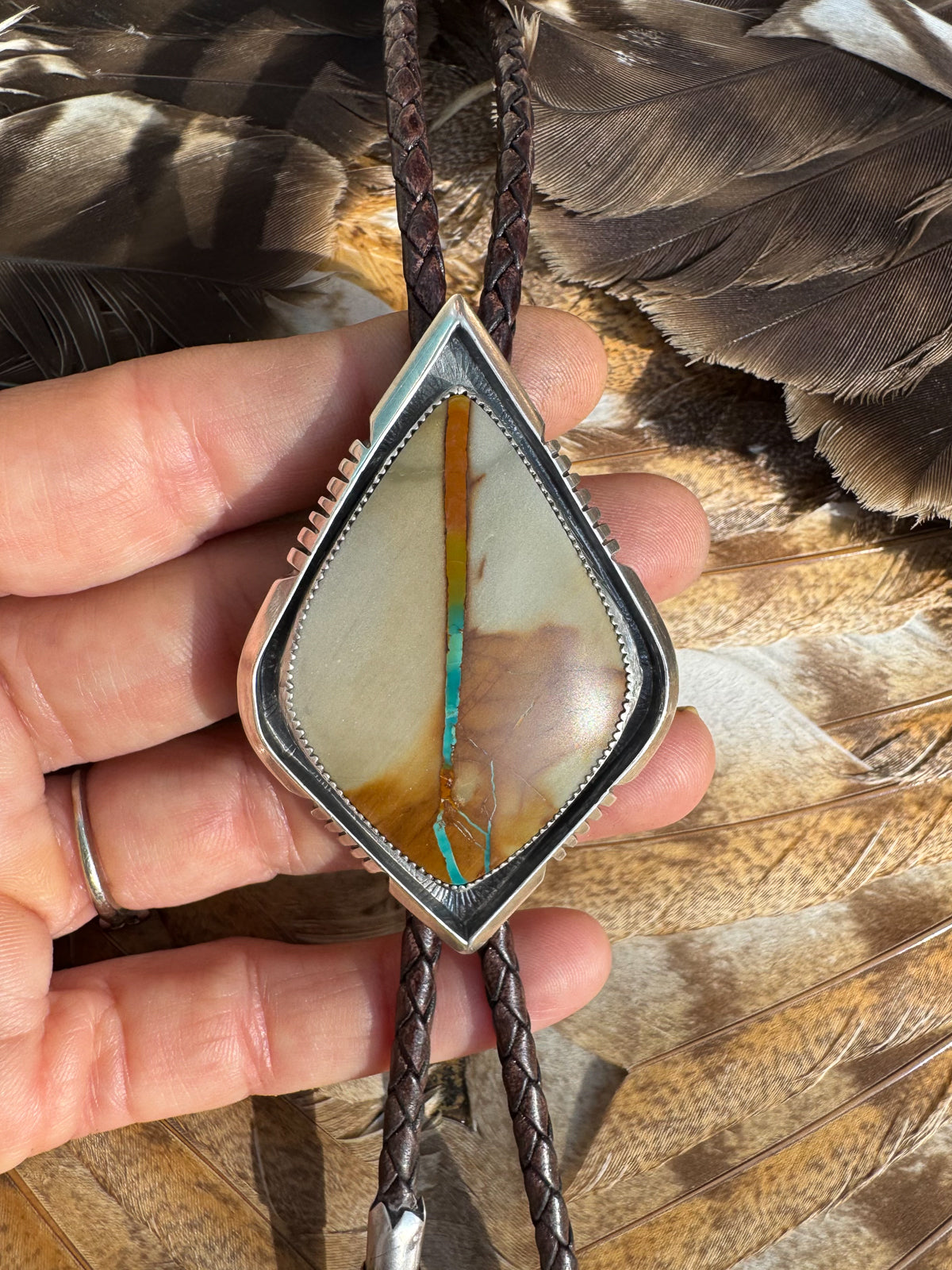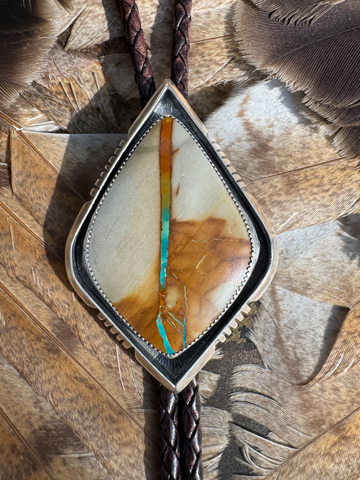 Available! Sterling Silver Pilot Mountain Rainbow Ribbon Turquoise Bolo Tie
